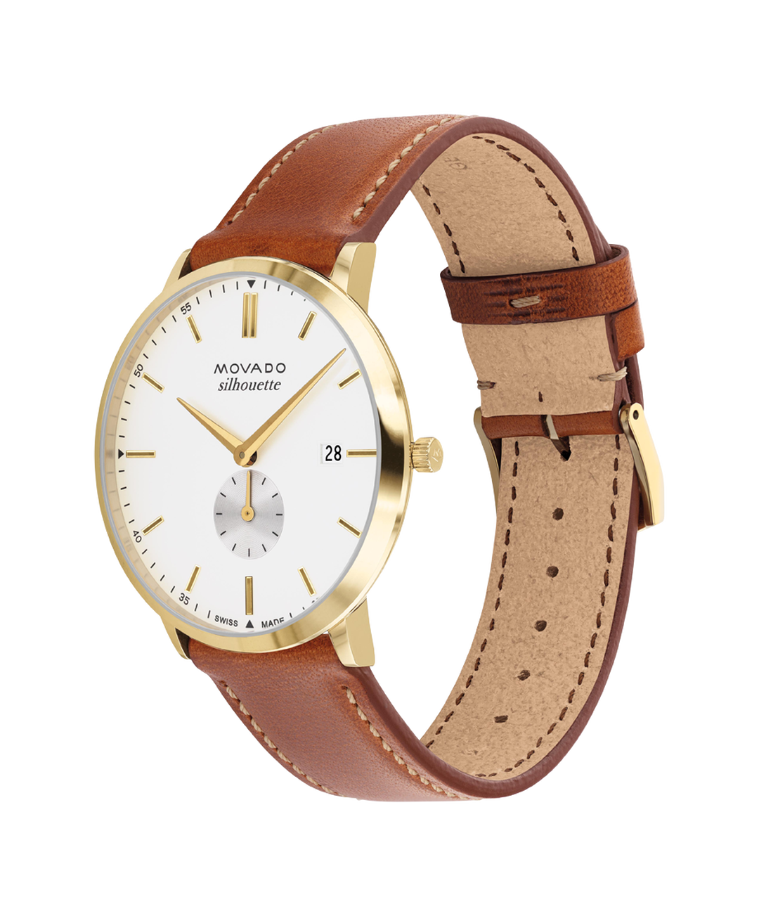 Capture vintage sophistication with this timeless watch. Inspired by our archives, this timepiece features a 40mm case with a gleaming ion-plated yellow gold finish and a luxurious congac top-stitched leather strap with a yellow gold ion-plated stainless steel buckle.