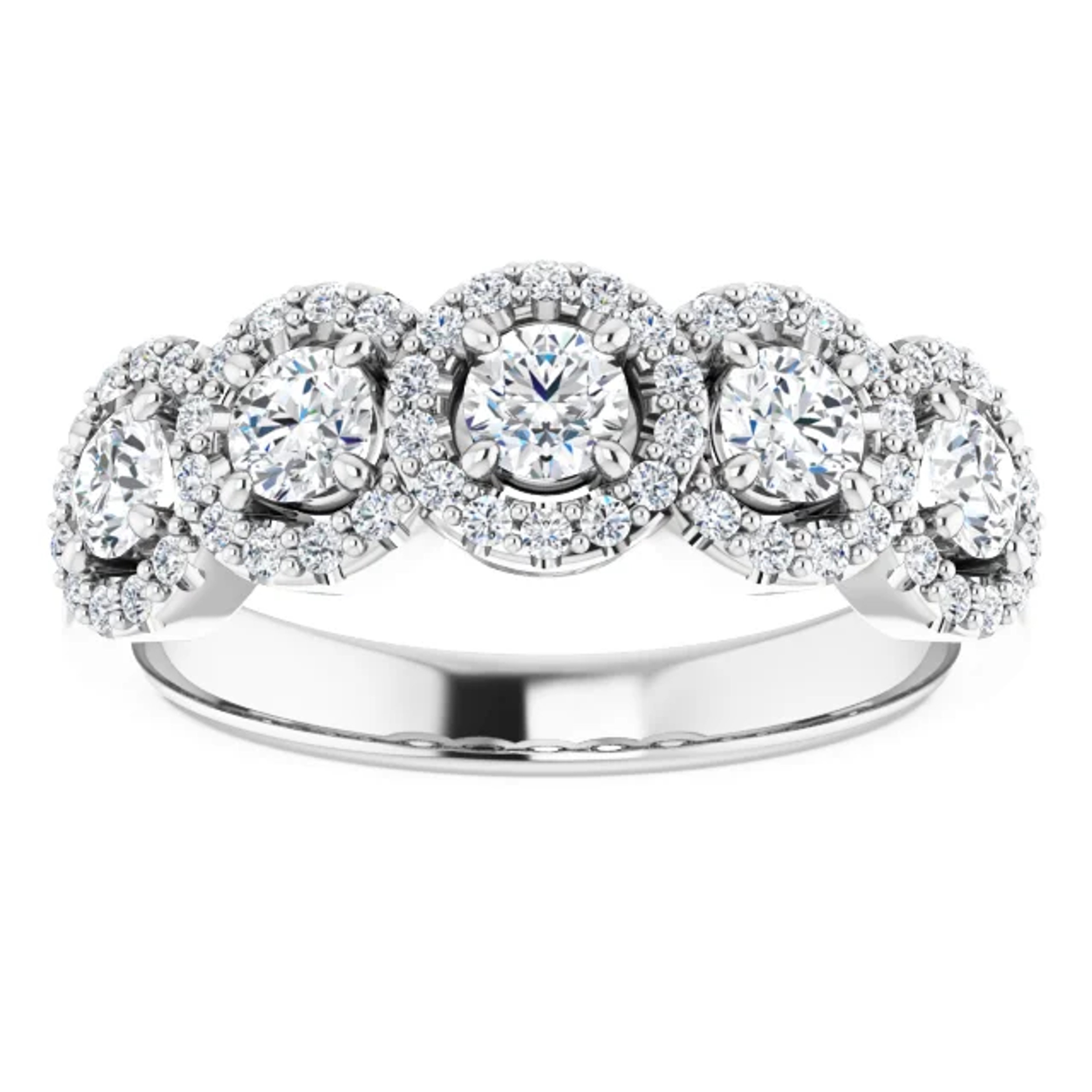 Expertly designed and crafted from rich, polished gold this dazzling anniversary ring is topped by eleven pave diamonds and would make a picture-perfect companion to just about any engagement ring.