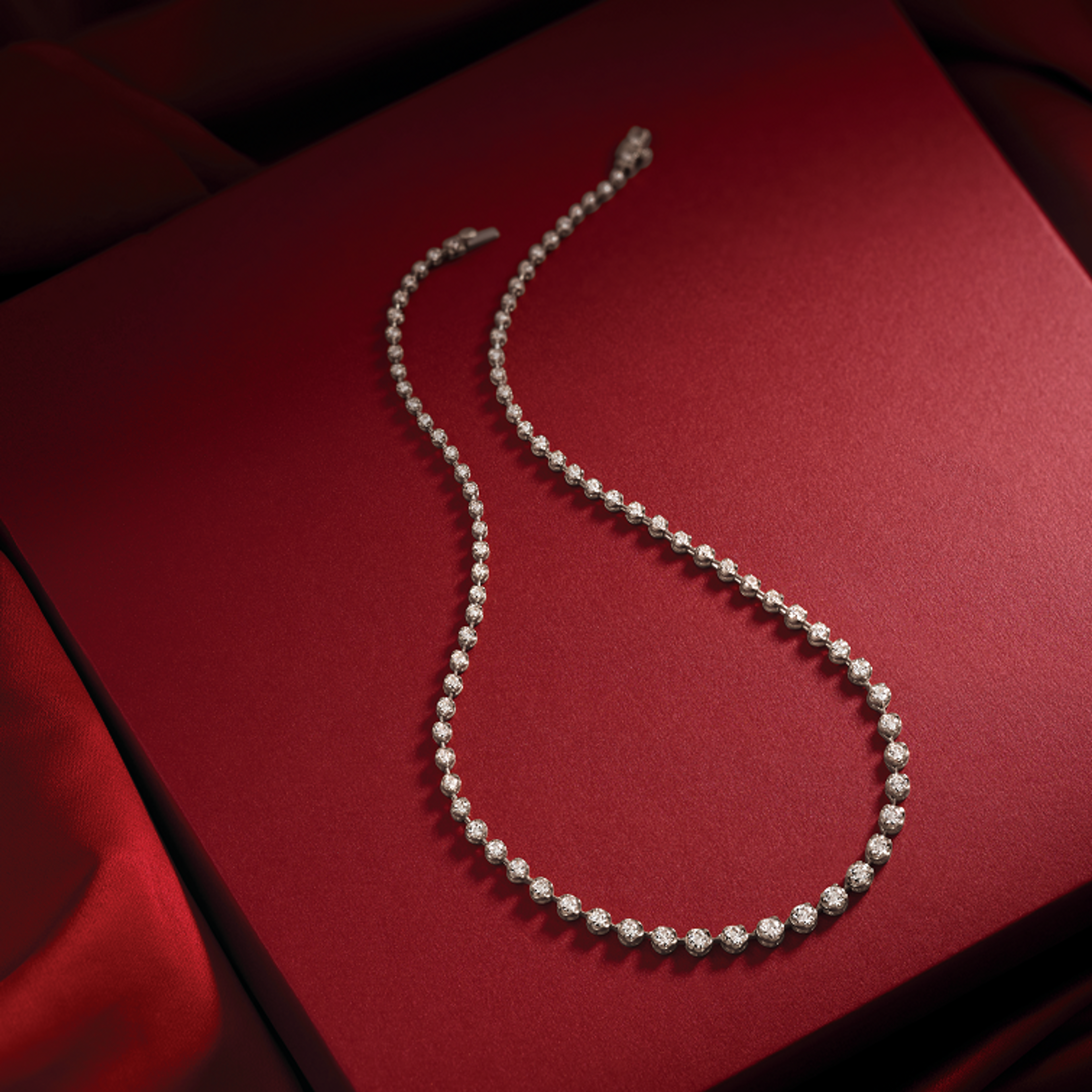 At the heart of this dazzling necklace, you'll discover a brilliant array of lab-grown diamonds, each meticulously graduated in size to create a breathtaking cascade of sparkle. With a design that is as timeless as it is contemporary, the Selby Necklace effortlessly enhances any outfit, from casual to couture.