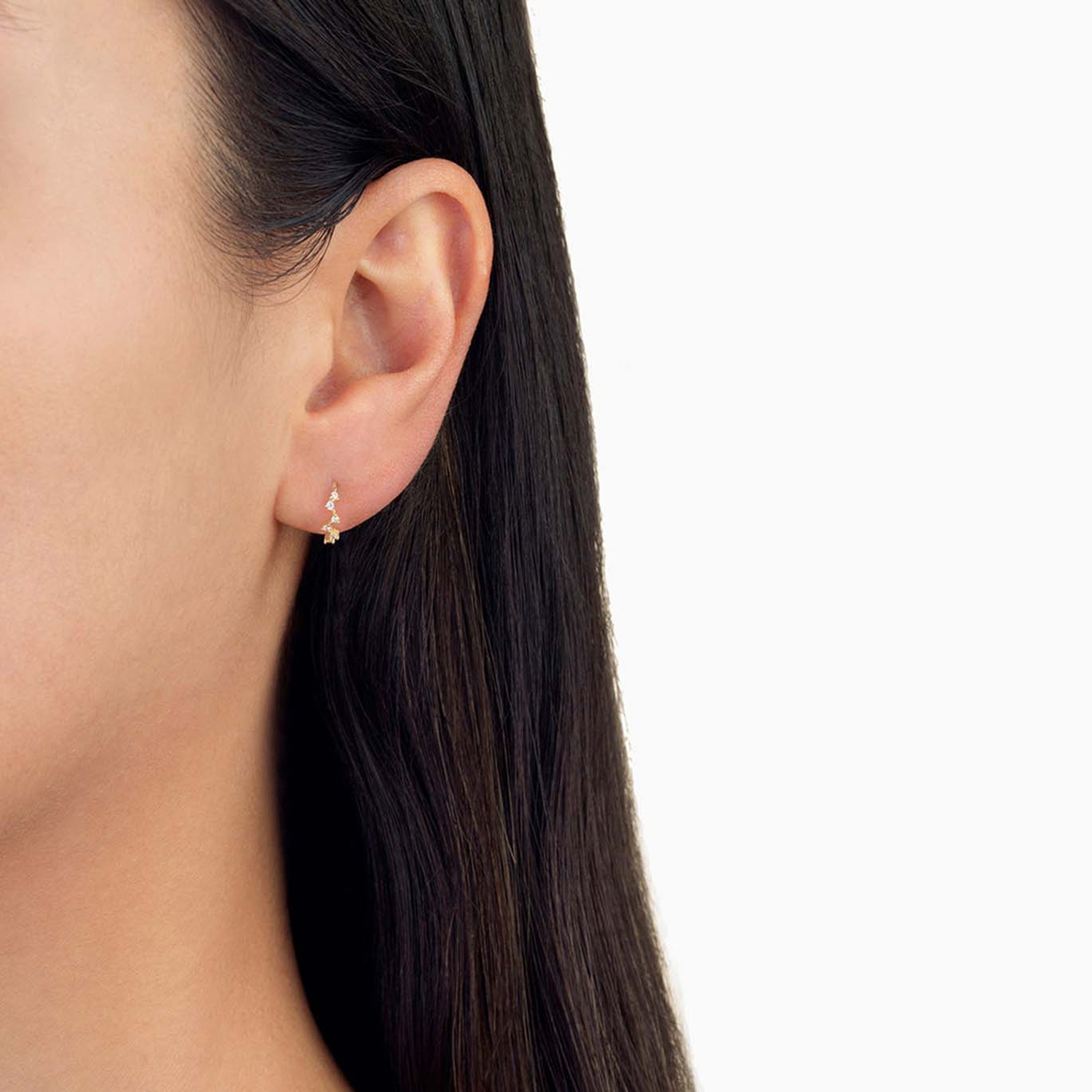 The petite size of the Lani Huggie Earrings allows for versatile wear, seamlessly transitioning from day to night with ease. Whether adorning your ears for a casual outing or adding a touch of subtle glamour to a sophisticated ensemble, these earrings promise to elevate your style with effortless charm.