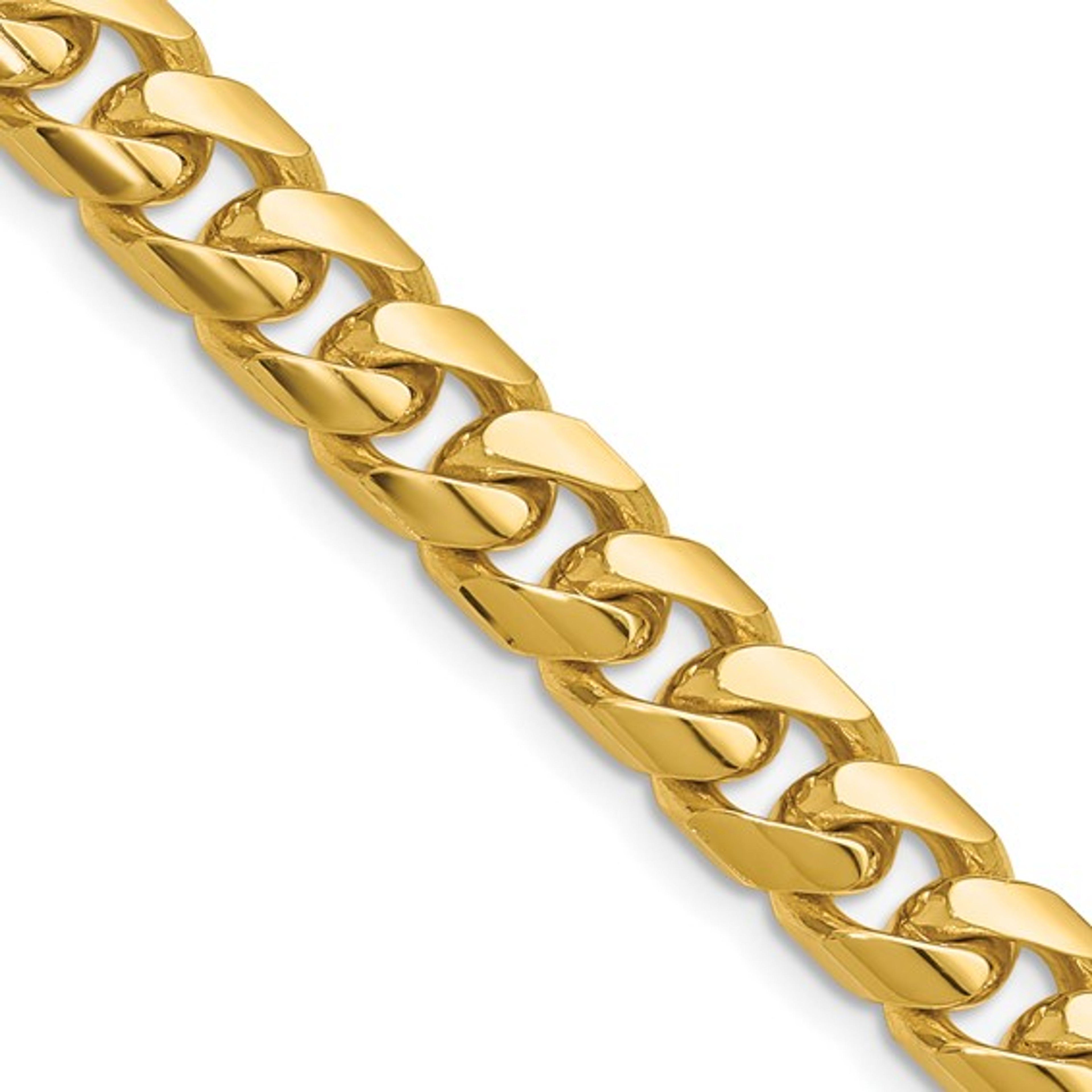 The Cuban chain originated in Miami during the hip-hop jewelry movement of the 1970s. It’s sometimes referred to as the Miami Cuban link chain and can still be seen around the necks of hip-hop artists today. Links in Cuban chains are more tightly connected, creating less movement than you’ll see in curb chains. This chain is semi-solid 14K yellow gold, allowing for a lighter chain.