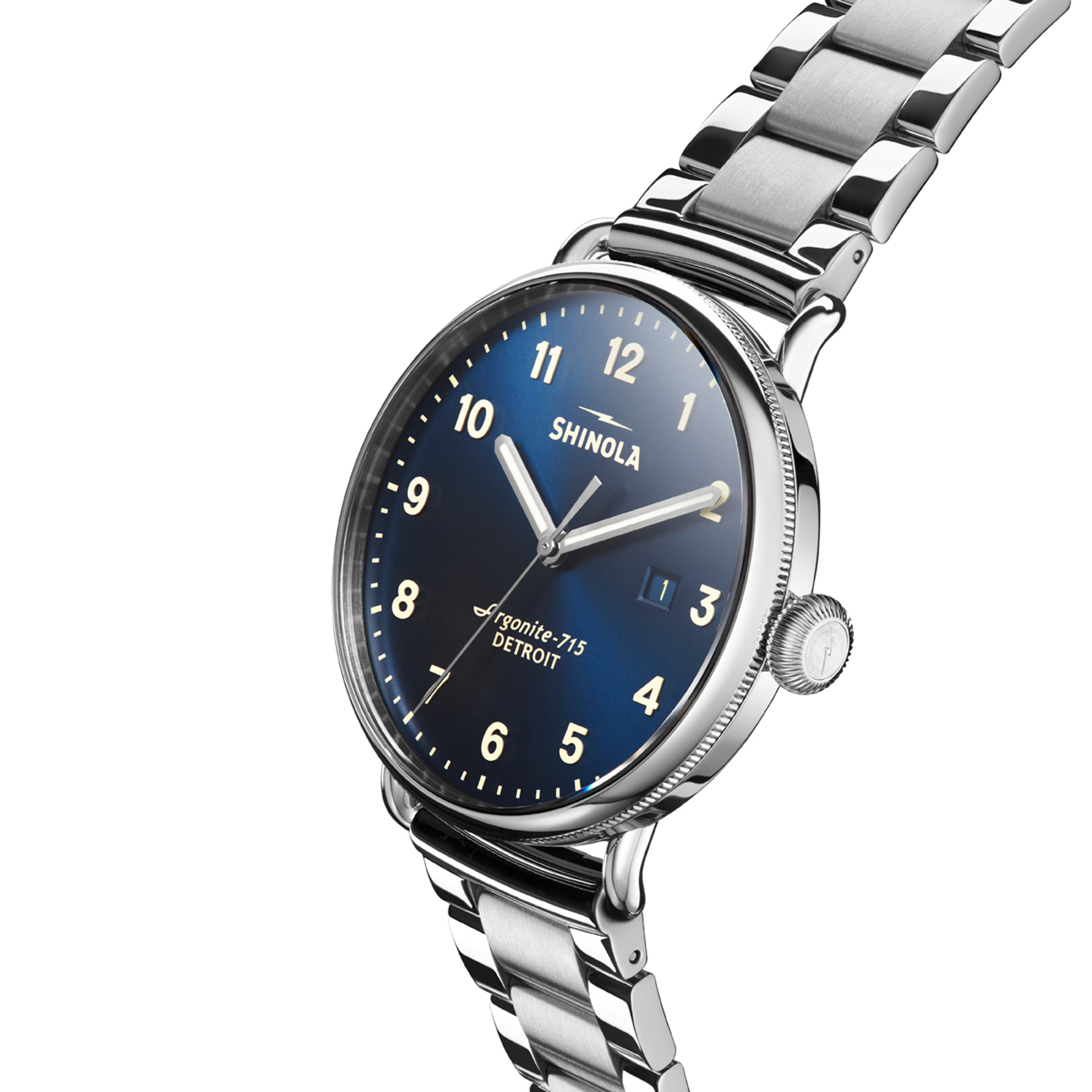A classic watch with a modern twist. The Canfield is our first watch built using a top loaded case construction for a larger face and clearer view — showcasing a refined minute track and slim, diamond-cut hands. From the coin edge bezel and neatly framed date window to the sophisticated three-link stainless steel bracelet, our engineers and craftspeople believe details weren't meant to be overlooked, they were meant to be celebrated.
