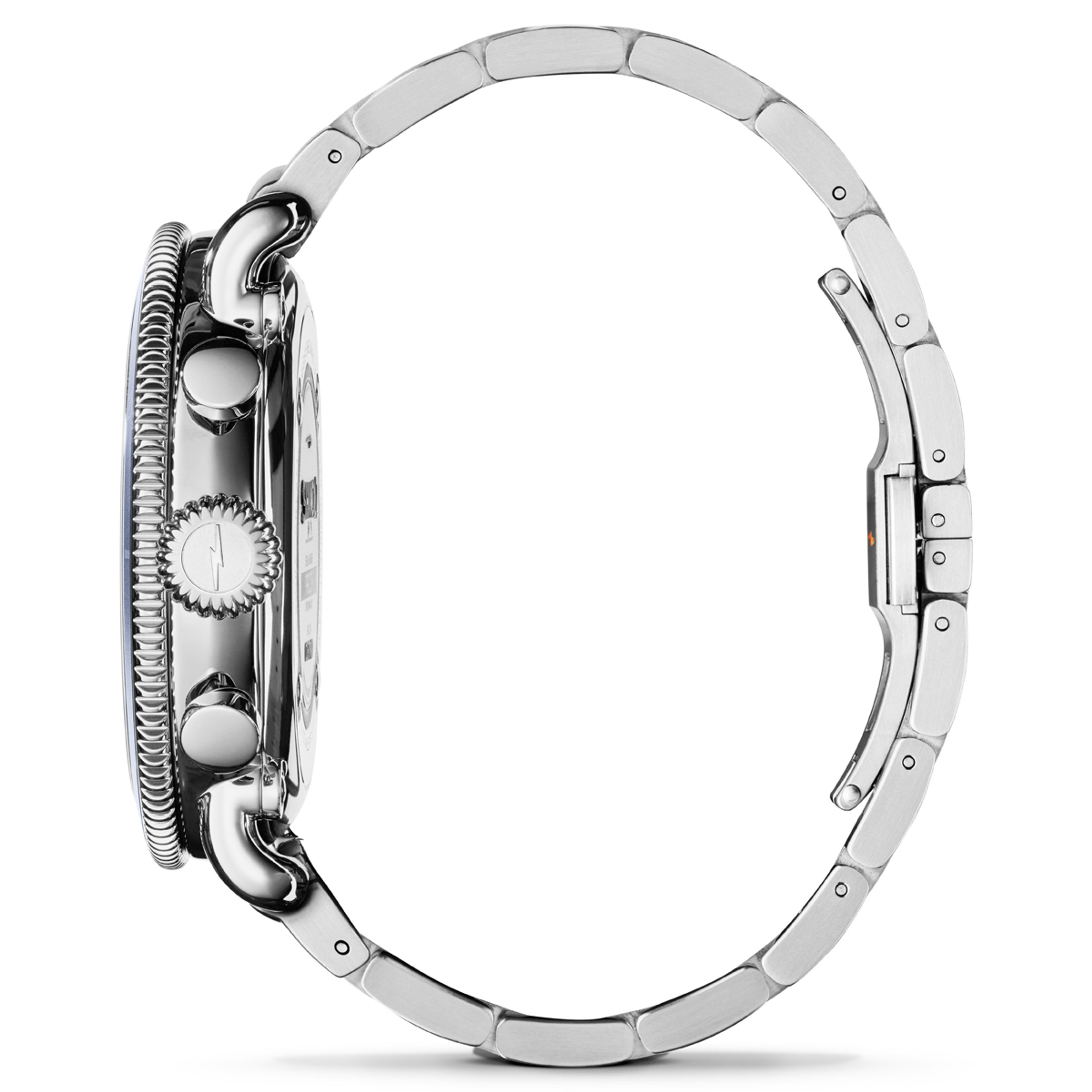 The Runwell Sport Chrono is made for the one who gets things done in style. Obsessively engineered and built for action, the midnight blue dial with a sandblast sunray finish is punctuated with three sub dials that measure hours, minutes, seconds and sub seconds. A midnight blue unidirectional turning bezel, stopwatch capabilities, and scratch resistant sapphire crystal make it worthy for everyday wear.