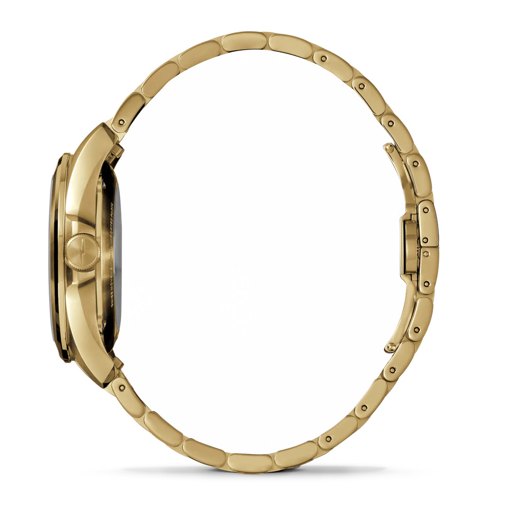 The Shinola Monster, scaled down and dressed up. Inspired by the natural 24-hour circadian cycle of day and night, this elevated automatic timepiece honors each passing second—and in this edition, dazzles by the hour. Signature Monster styling accentuates the elegant white Mother of Pearl dial, which complements eight beautiful SI full cut 1.5mm diamond indices. The 36mm case looks and feels balanced on any wrist—men or women. Alternating brushed and polished surfaces give the gold finish a three-dimensional character. An exhibition caseback reveals the Swiss-made Sellita SW200-1 automatic movement at work. It’s all brought together by the refined 5-link quick-release gold bracelet.