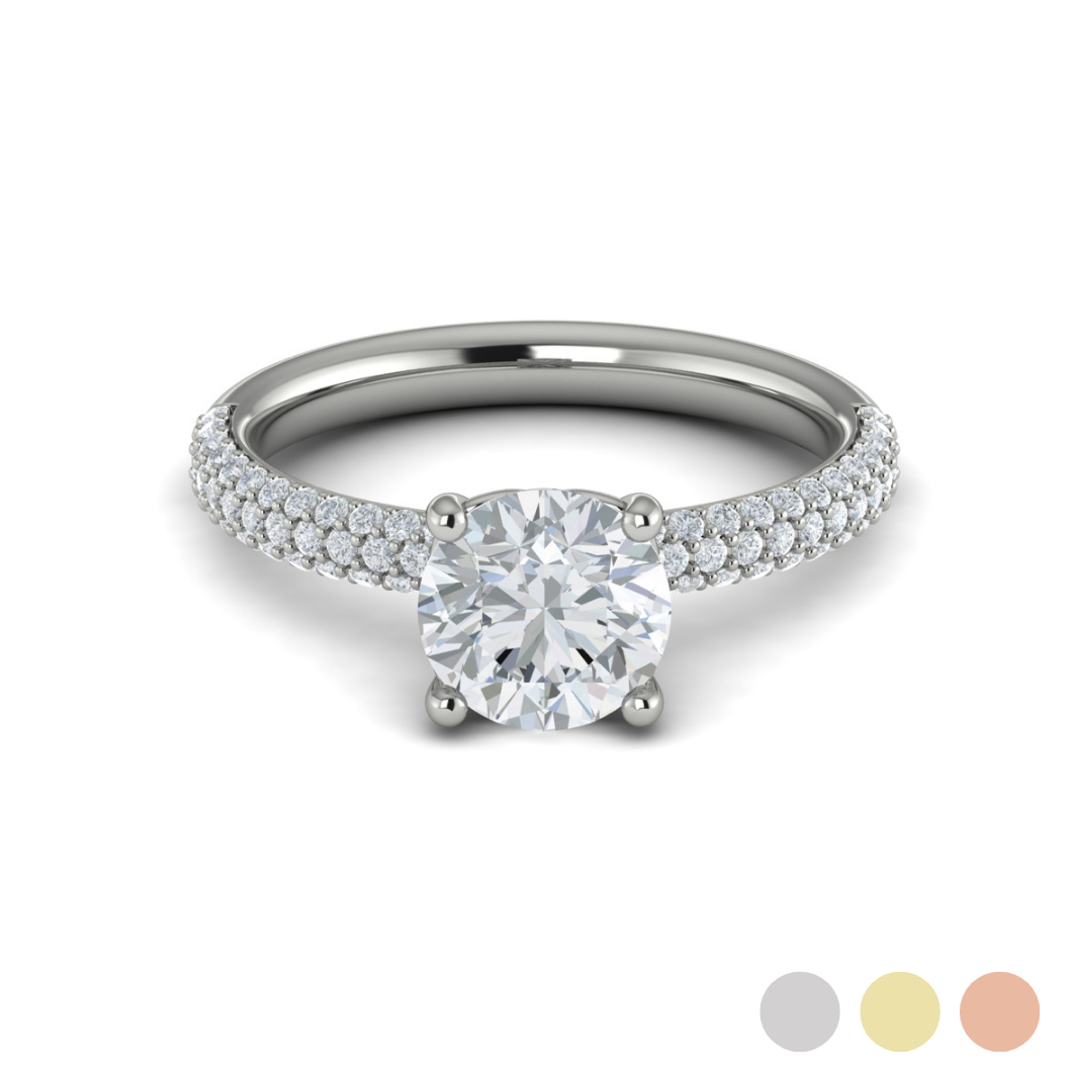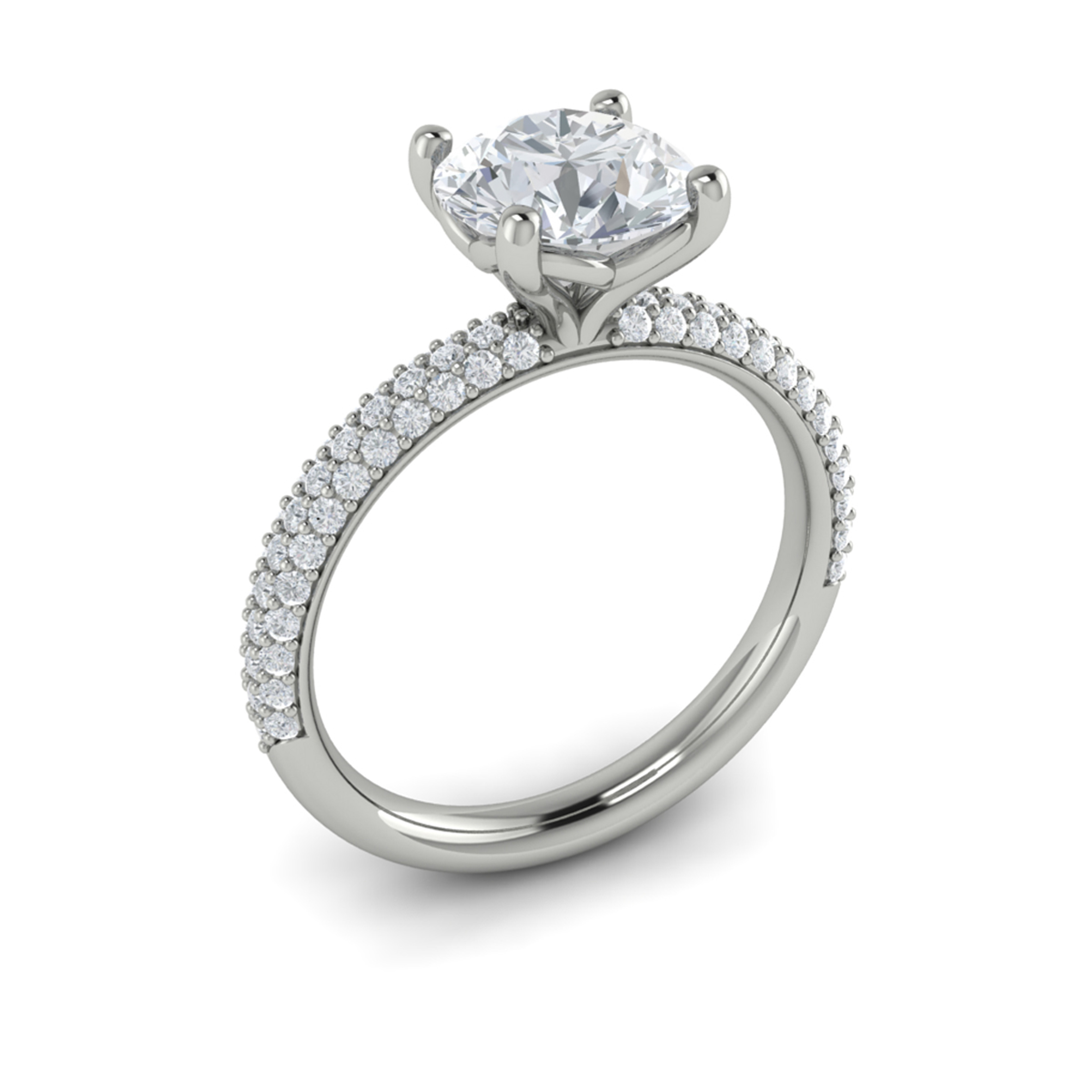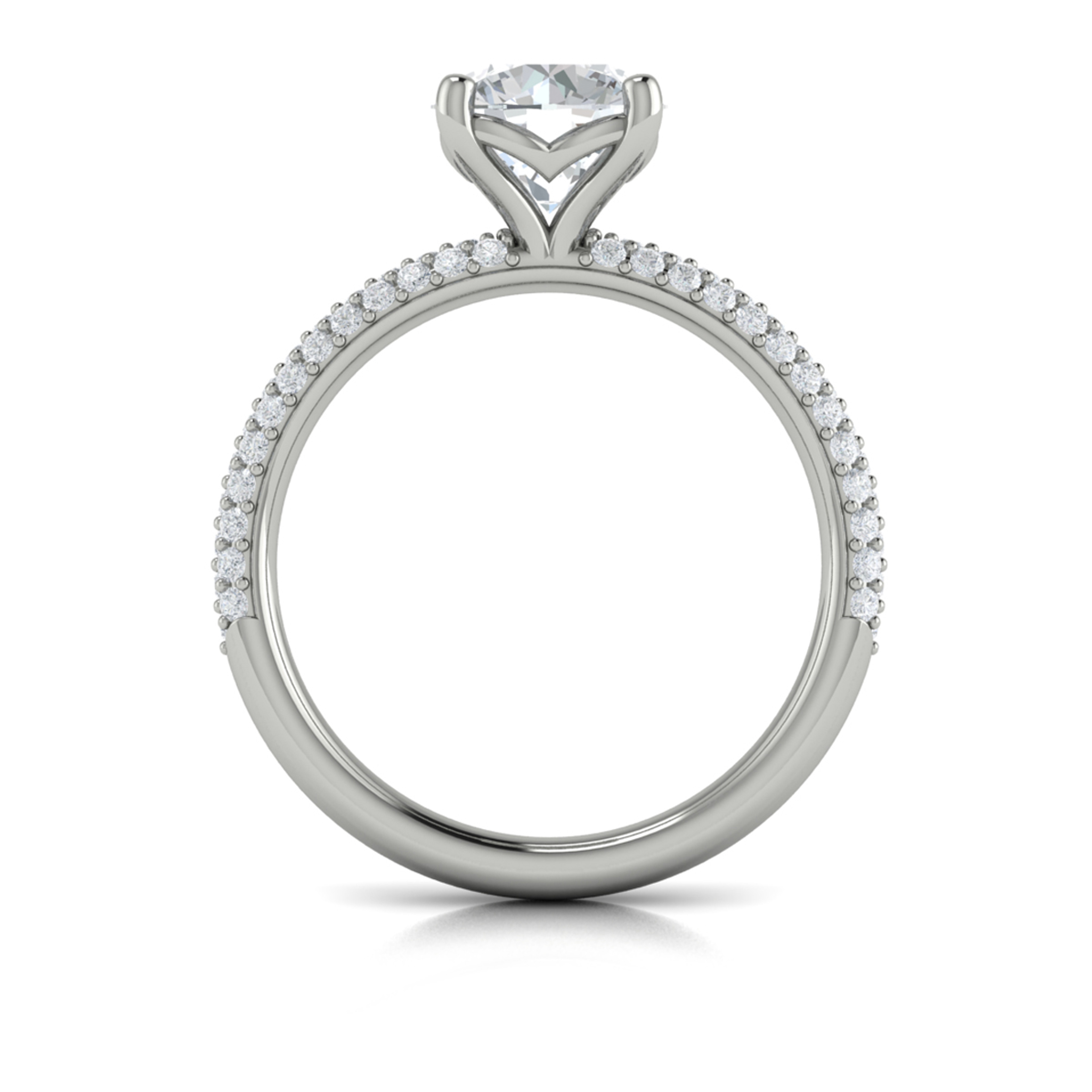 This setting features a seamless line of intricately set micro pave diamonds, creating a stunning cascade of light that dances with every glance. Each diamond, like a tiny constellation, is meticulously arranged to form a breathtakingly luminous display. This setting can be paired with our Sophie Micro Pave Wedding Band for extra sparkle!
