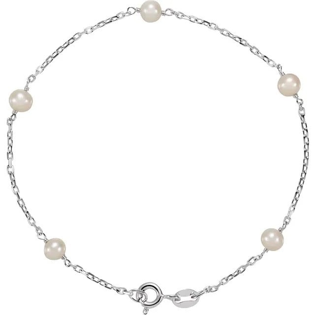 Sterling Silver Cultured White Freshwater Pearl 5-Station 7" Bracelet