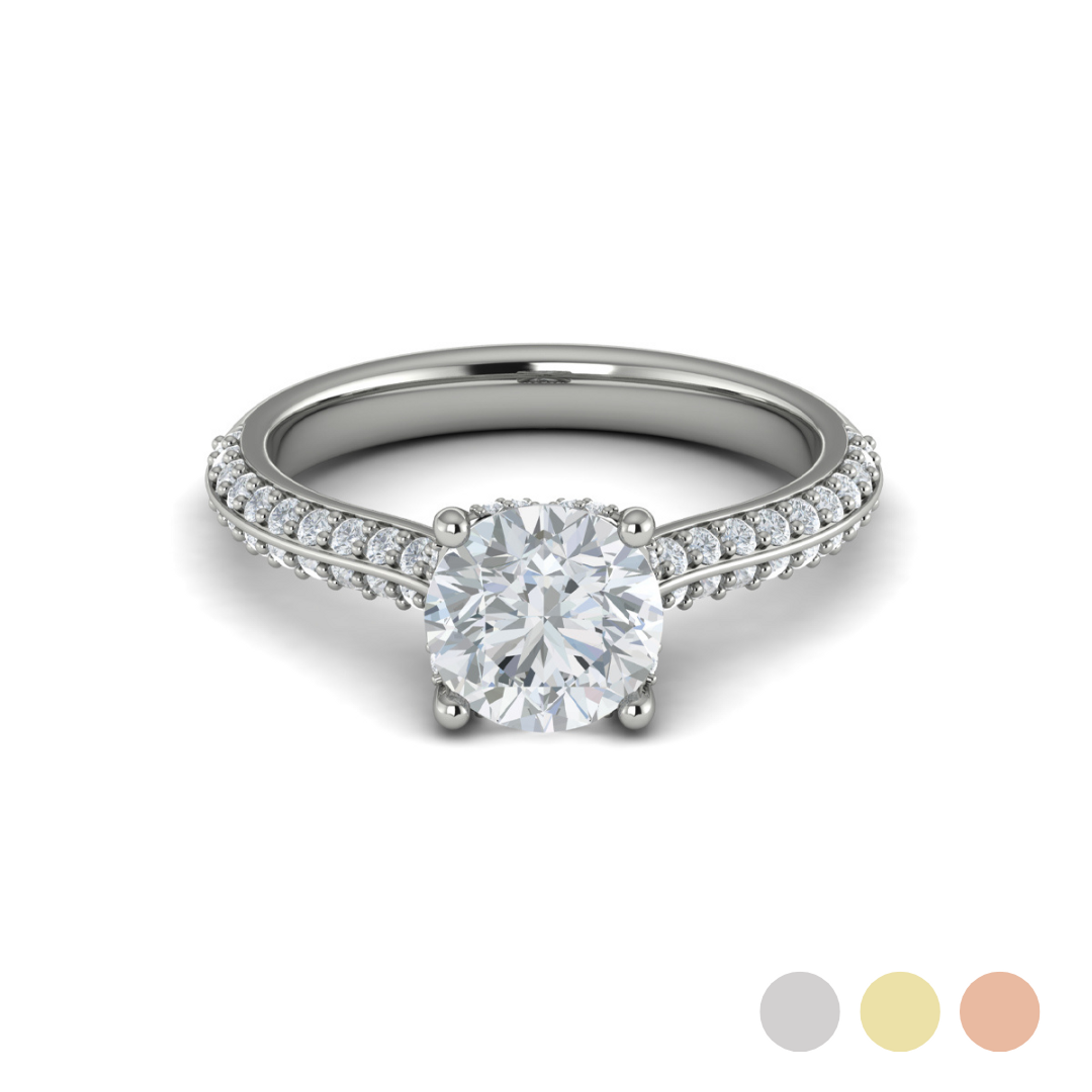 Setting only (center stone sold separately). Image shows a 1 carat round center stone.