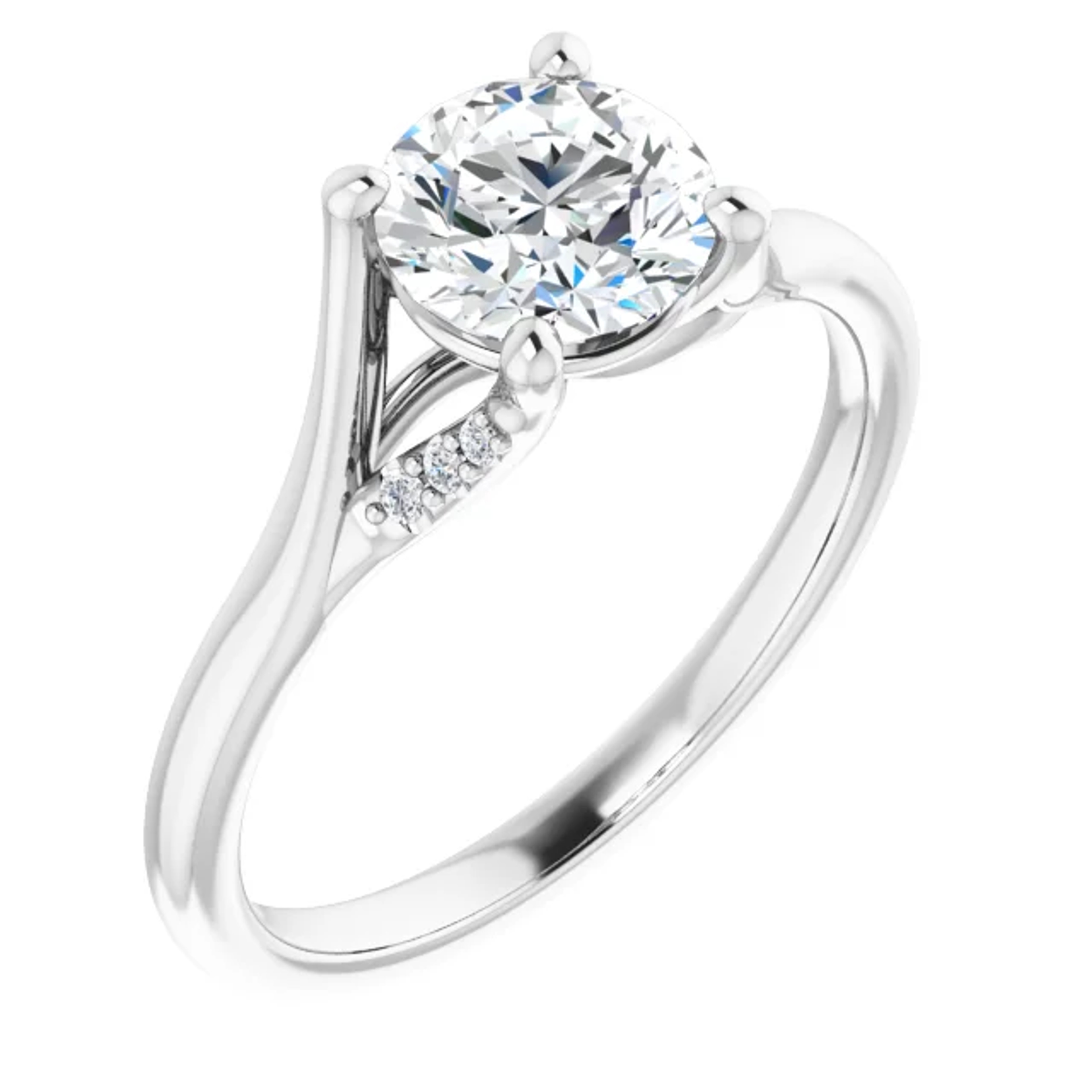 Setting only (center stone sold separately.) Image shows a 1 carat round cut center stone.