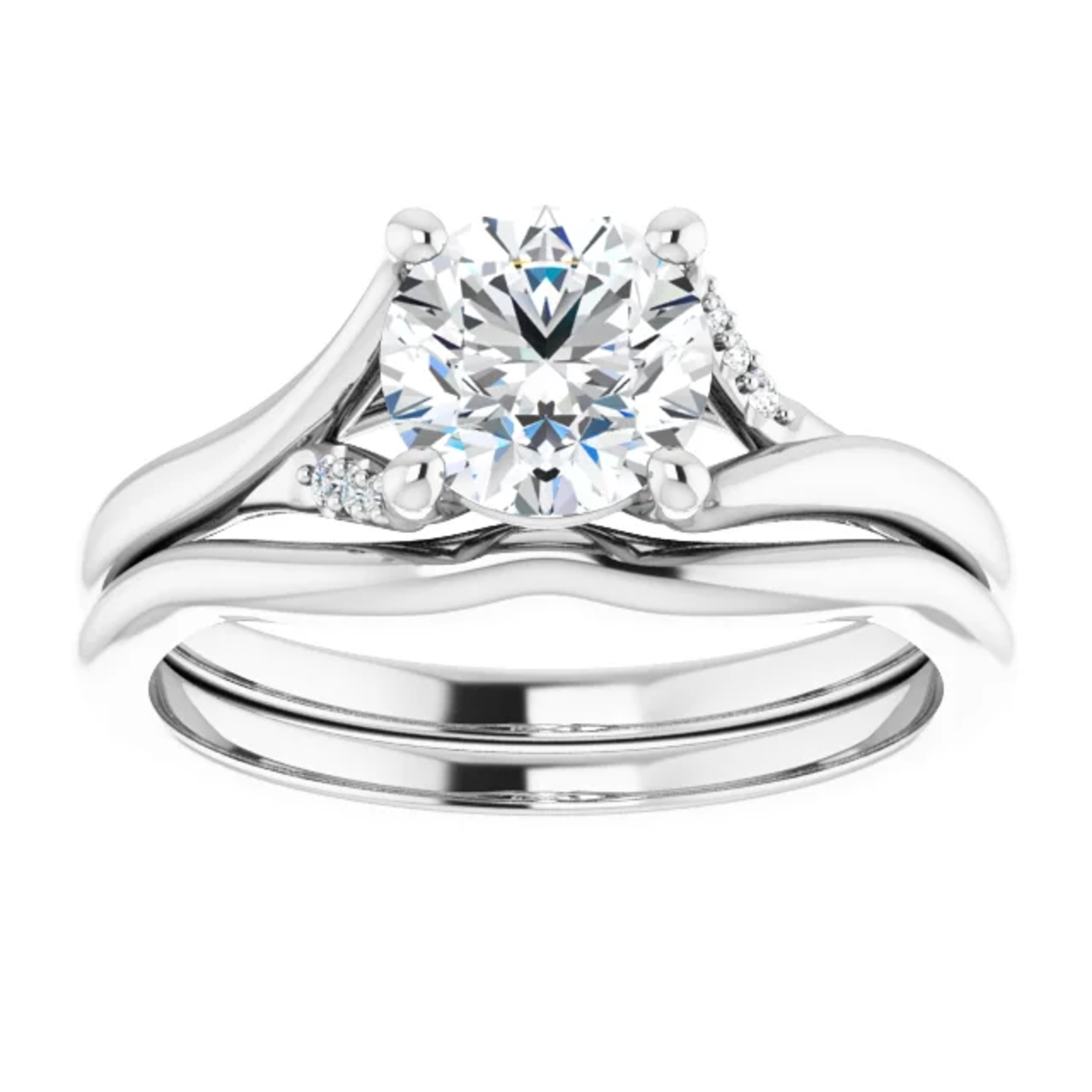 The soft curve of the band adds a touch of fluidity and grace to the design and the simplicity of the curved band allows it to serve as a beautiful canvas for your enduring love. This pairs perfectly with the Tiana Accented Split Shank Setting.