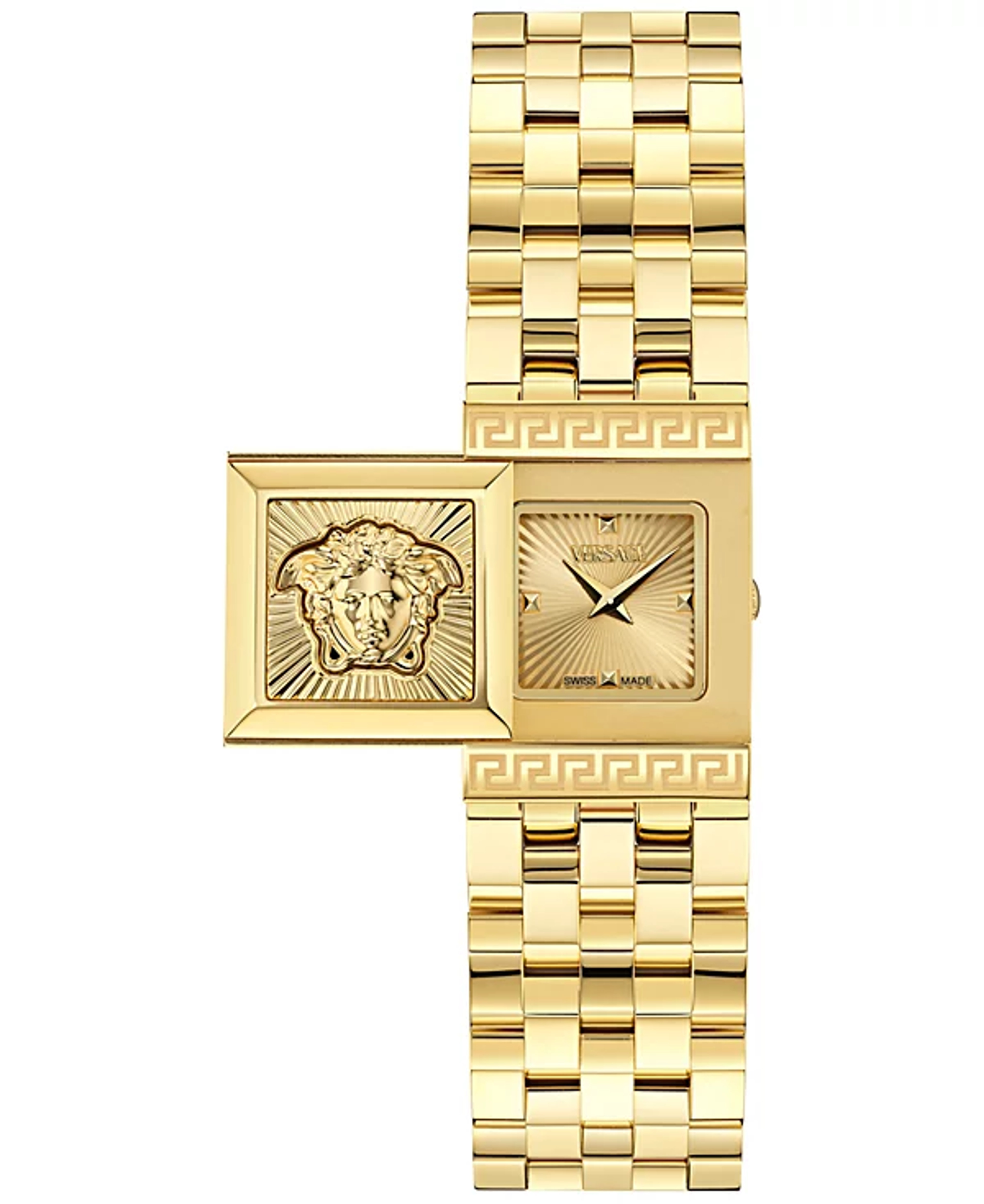 Dial: White dial with Greca on inner ring / Versace Logo and Medusa at 12h / date window at 6h