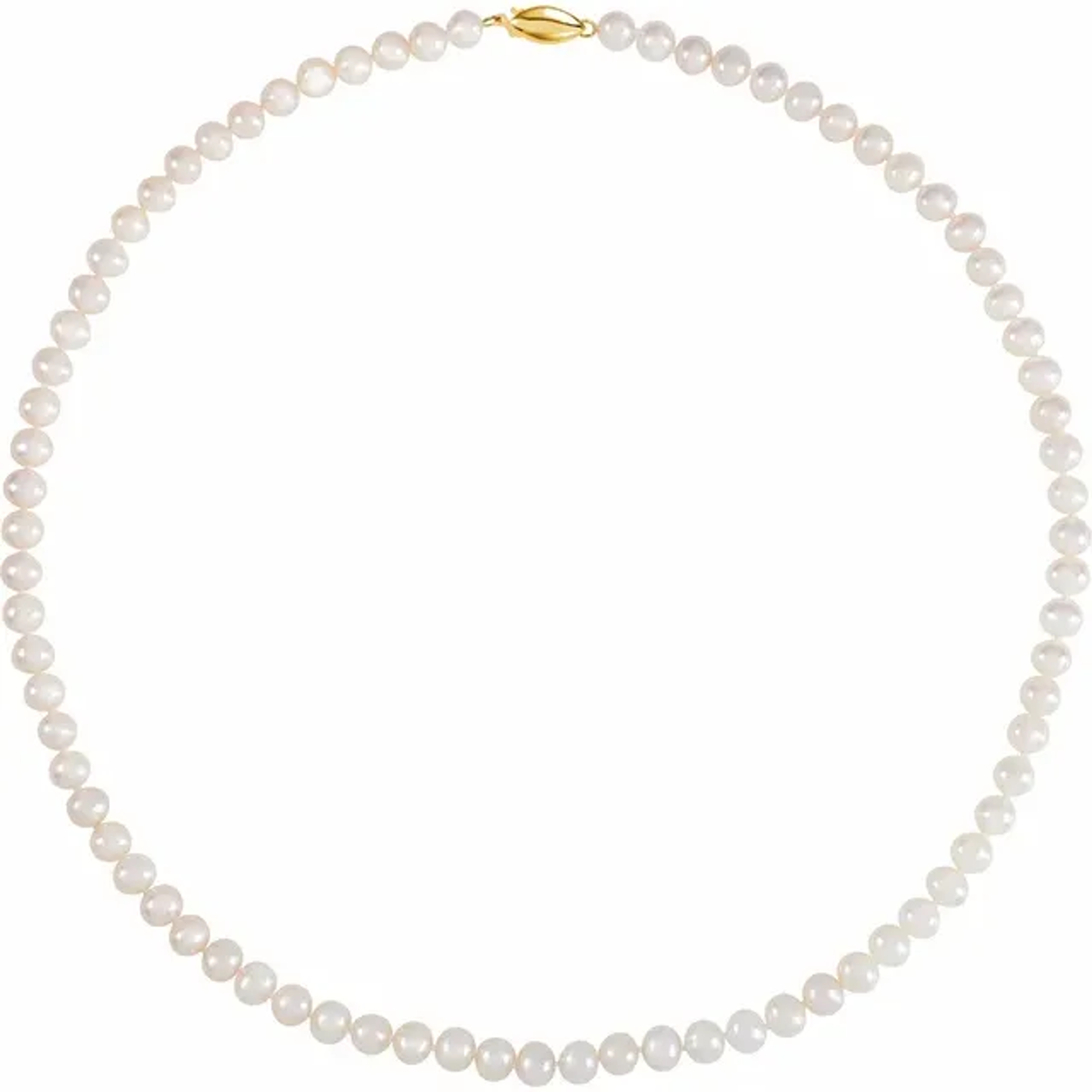 Nine delicate cultured freshwater pearls are stationed along a 14K yellow gold cable chain necklace in this sweet necklace.